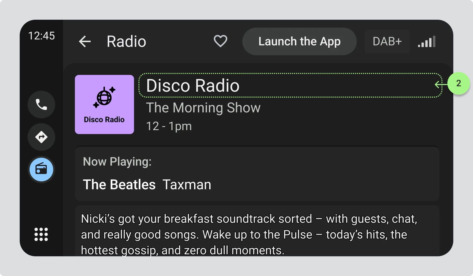 - Station name displayed in radio interface.
