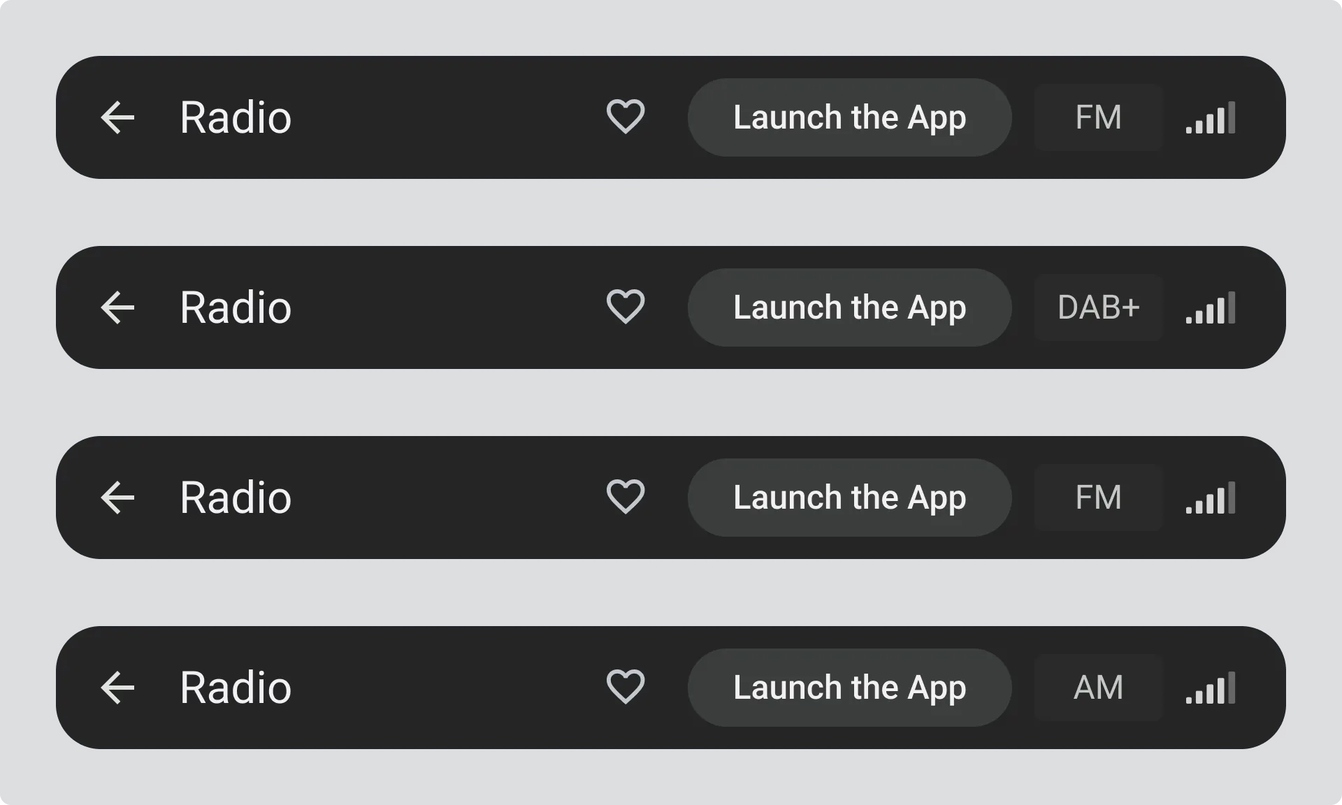 Using the available header space, you can show the broadcast system for the station, for example by showing the text “DAB” or “FM”.