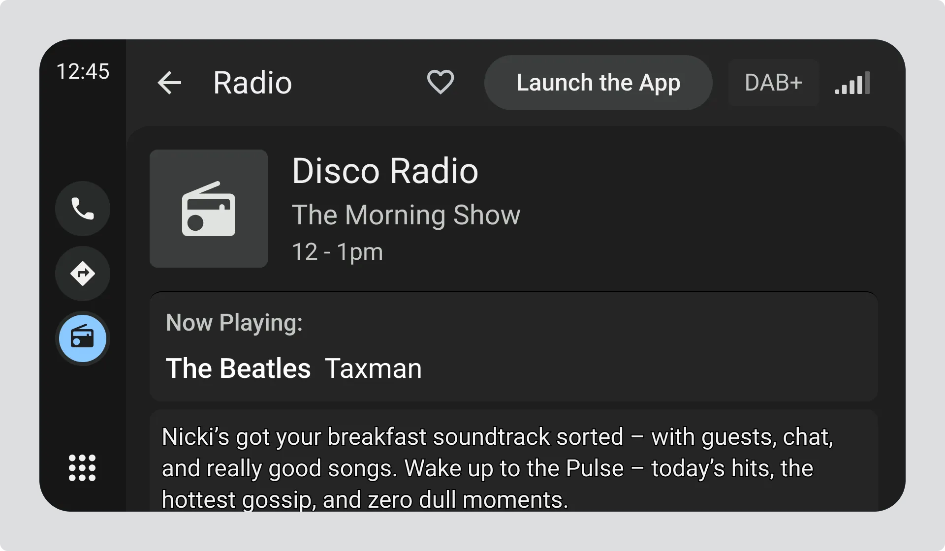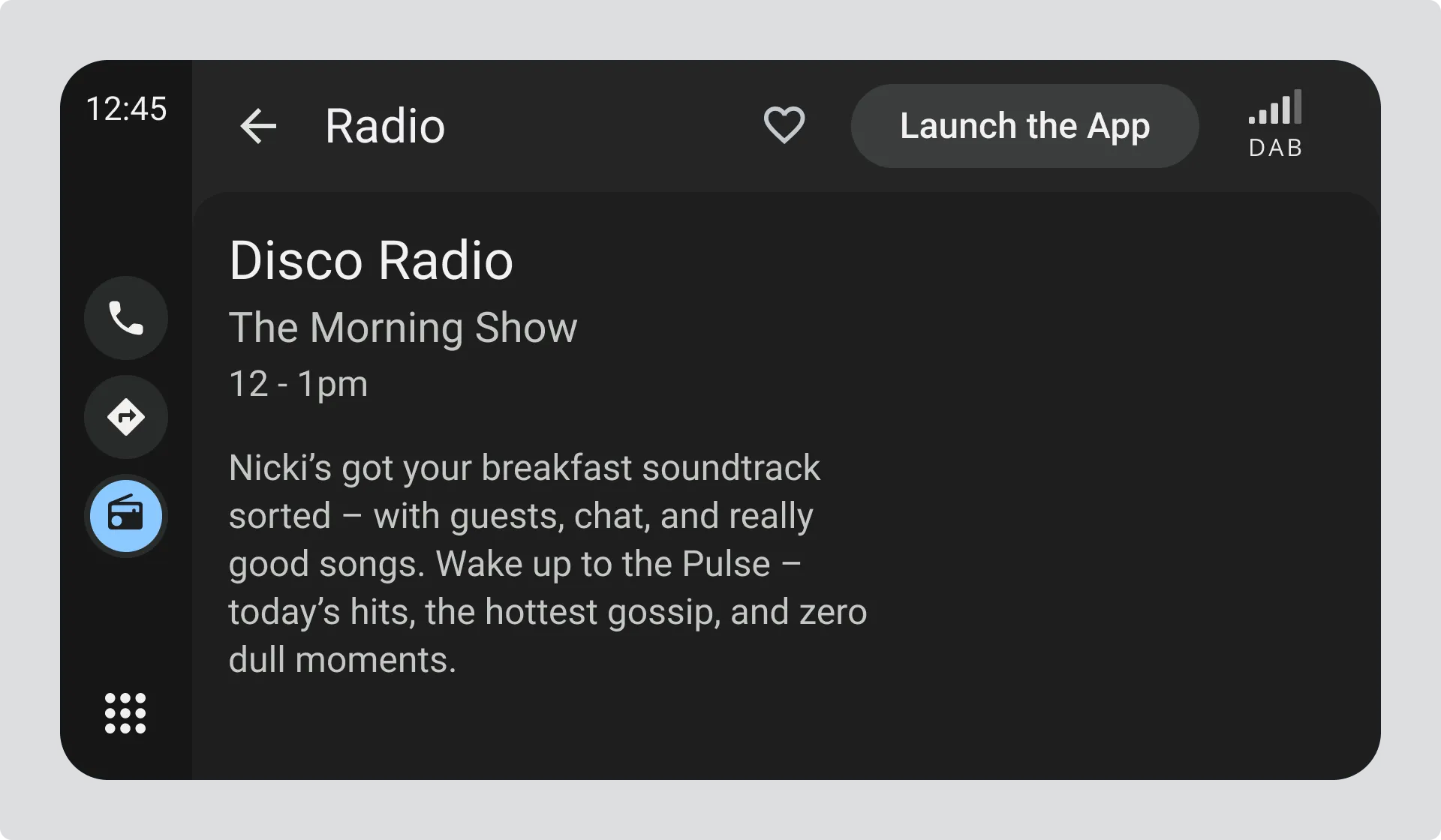 Section titled “1. Best Practice: Use a generic icon to represent radio”Using the radio station icon from your design system is a good option to represent radio when no station logo is available.