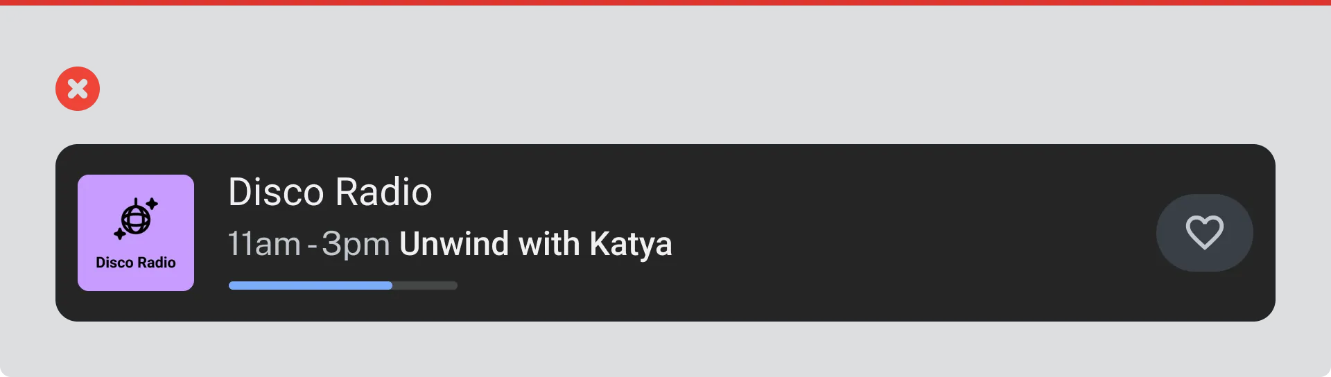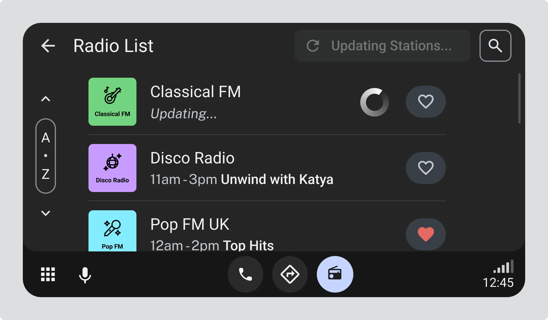 - Station logo is disabled and station title has reduced opacity to show the item is being refreshed.
